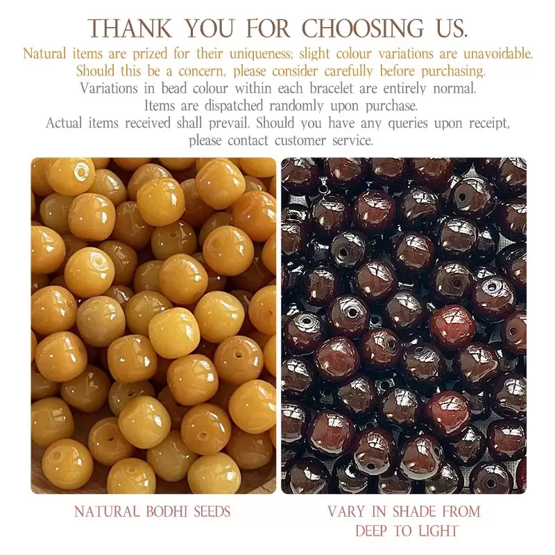 Each natural bodhi seed bracelet is meticulously handcrafted, preserving the unique grain and spiritual essence of the bodhi seeds, ensuring you receive a piece of authentic Buddhist jewelry.