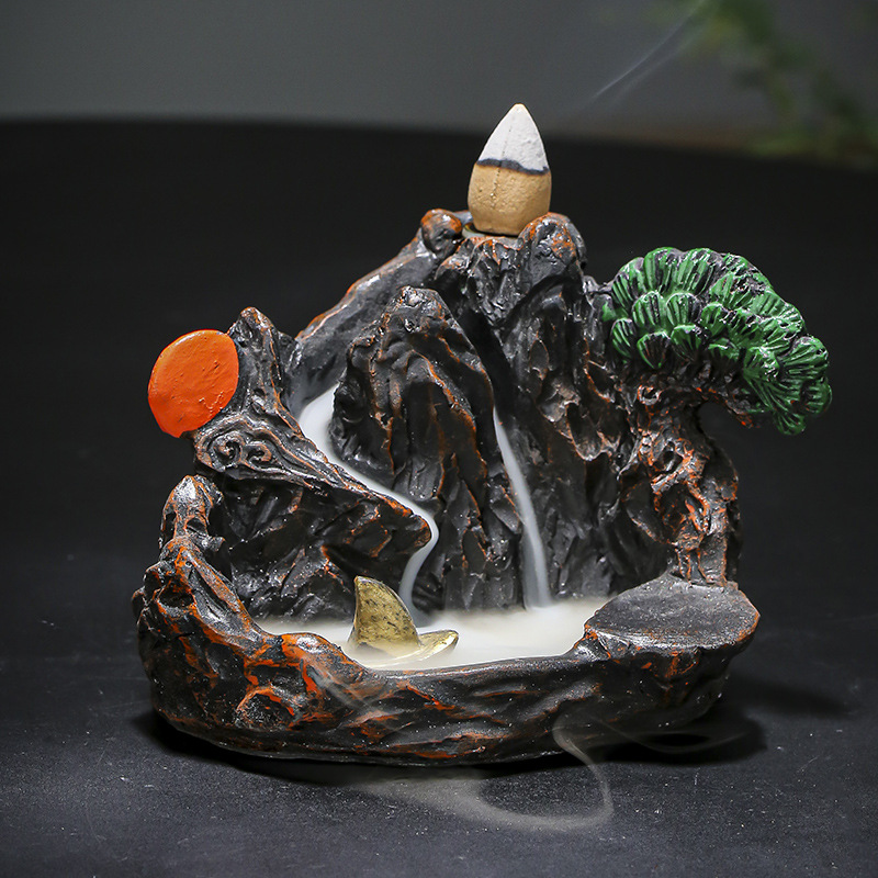 Resin Backflow Incense Burner – Creative Ceramic Aromatherapy Holder & Decorative Vase Candle Ornament