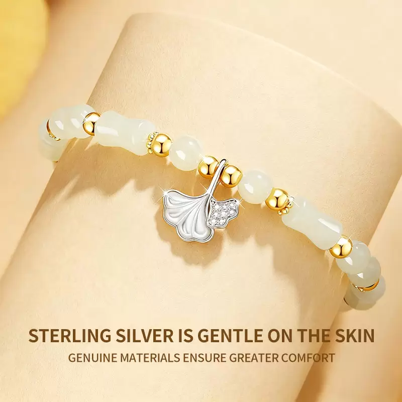 Premium Material: Crafted from high-quality S925 silver, this sterling silver jade bracelet features a stunning Hetian jade inlay that is hypoallergenic, durable, and skin-friendly, making it perfect for everyday wear. Elegant Ginkgo Design: The ginkgo leaf bracelet showcases a beautiful ginkgo design, symbolizing longevity, resilience, and blessings, deeply rooted in traditional Chinese culture. Unique Bamboo Chain Style: This Chinese style bracelet incorporates a unique bamboo chain hand jewelry design, merging modern craftsmanship with the elegance of new Chinese style jewelry aesthetics. Versatile Gift Choice: Ideal as a thoughtful girlfriend gift jewelry, this oriental gift bracelet is perfect for birthdays, anniversaries, and festive occasions for loved ones including wives and mothers. Exquisite Craftsmanship: Each piece is hand-polished to perfection with fine details, ensuring that every S925 silver bracelet not only embodies cultural charm but also offers exceptional comfort for daily wear.
