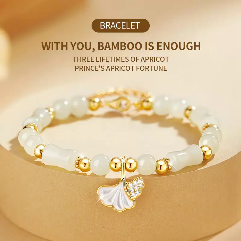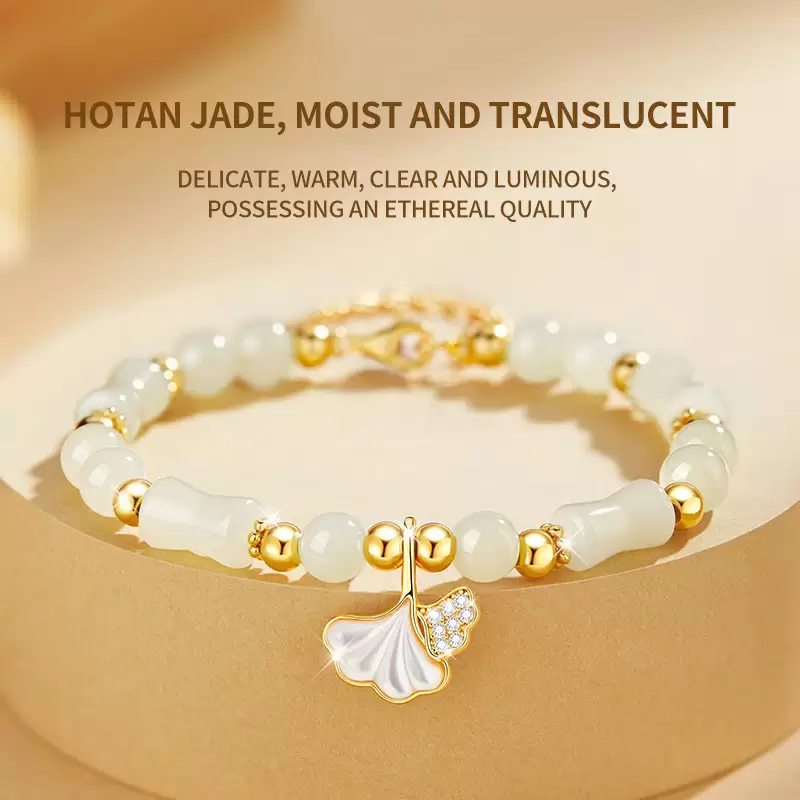 San Sheng You Xing S925 Silver & Hetian Jade Ginkgo Bracelet – Chinese Style Bamboo Design Gift for Her