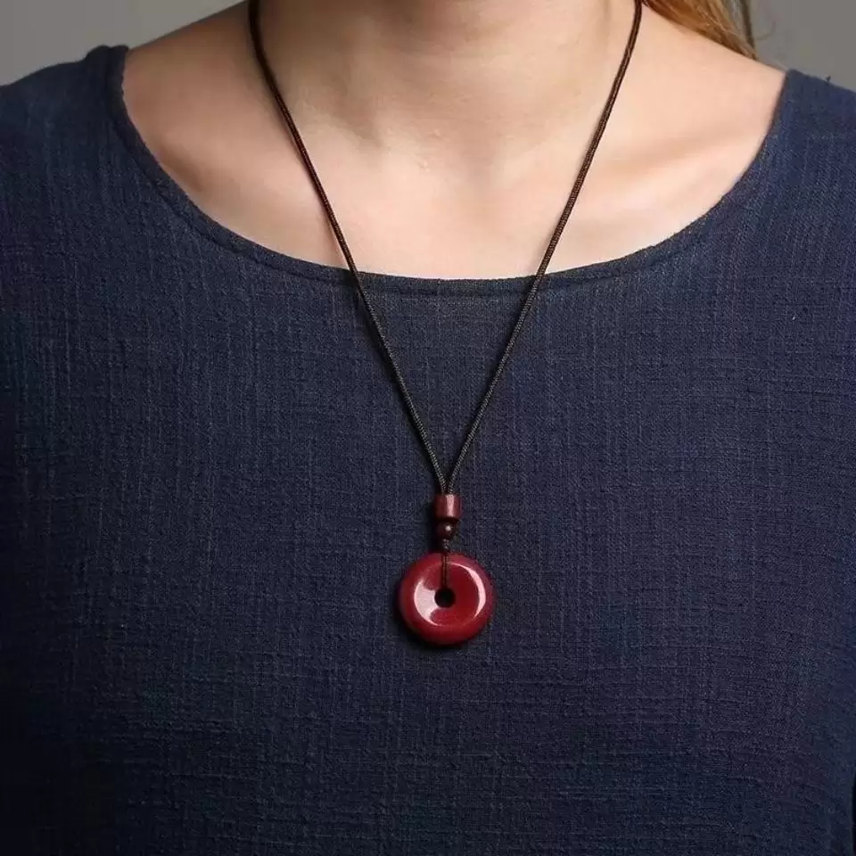Embrace the power of this feng shui amulet necklace, crafted from natural cinnabar, which is believed to attract good fortune, ward off negativity, and promote balance in your life.